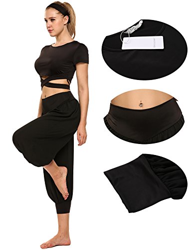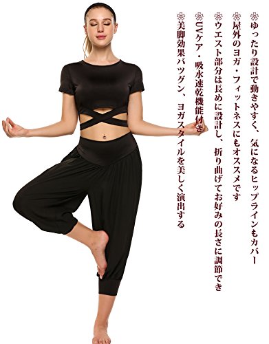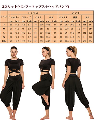 원본상품명: Ekouaer ヨガウエア 3点セット(パンツ+トップス+ヘッドバンド) レディ?スヨガパンツ サルエルパンツ 吸汗速乾 ヨガレギンス クロスウエスト ダンスパンツ 美脚パンツ スポ?ツウェア トレ?