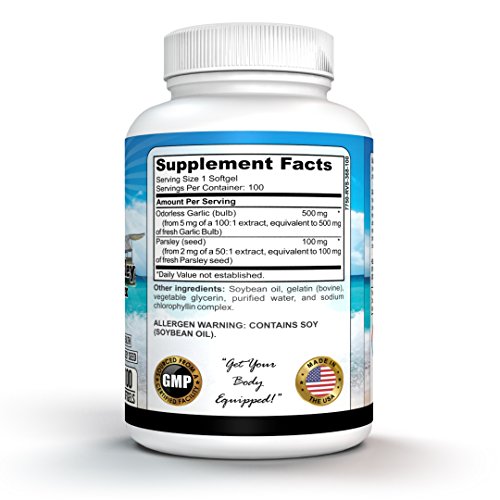 -. Title : Garlic & Parsley 600mg Complex 100 softgels Yeast Candida Fighter Healthy Cholesterol Support Odorless Formula Enhanced with Breath Freshening Parsley Seed Supports Healthy Gums Heart Immunity