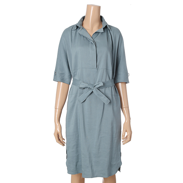 V네크라인 카라 원피스로 단정하고 캐주얼해보이는 린넨원피스.