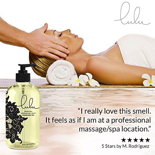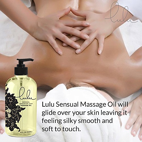 -. Binding : Health and Beauty -. Brand : Lulu Lube -. EAN : 0784672283908 -. Feature : Infused with Geranium Leaf, this lightweight aromatic oily lotion leaves your skin hydrated and replenishes dryness. / Easy to dispense from our handy pump pack, a little goes a long way and Lulu smells and feels great. / Lulu Sensual Massage Oil will not leave skin oily or greasy your skin will feel silky smooth and soft to the touch without any sort of oily residue, making it ideal for sensual massage. / Interested in adding massage to your intimacy? Lulu Sensual Massage Oil is the perfect choice for any couple / We will happily send you a FULL REFUND if you don't love our Lulu Sensual Massage Oil. -. IsAdultProduct : 0 -. Label : Lulu Lube -. Manufacturer : Lulu Lube -. NumberOfItems : 1 -. ProductGroup : Health and Beauty -. ProductTypeName : HEALTH_PERSONAL_CARE -. Publisher : Lulu Lube -. Studio : Lulu Lube -. Title : Lulu Sensual Massage Oil 16oz. For Luxurious Relaxing Body Massages. Scented with Premium Natural Aromatherapy Essential & Sweet Almond Oils. USA Made -. UPC : 784672283908