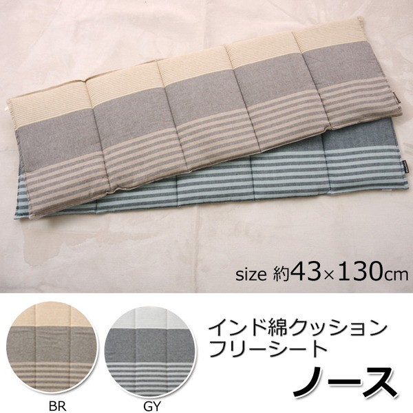 【商品名】クッション 椅子用 フリーシート ボーダー 綿100% シンプル 『ノース』 グレー 約43×130cm