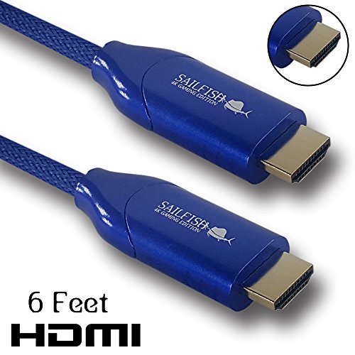 Sailfish HDMI cable 2.0 - 4K Gaming Edition, HDR, FreeSync over HDMI, Cable Wrap Included (6 Feet, Blue) - Xbox PlayStation PS3 PS4 PC Apple TV Laptop