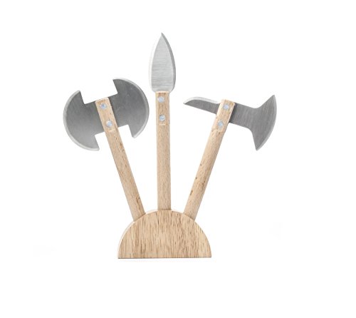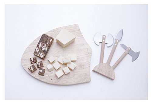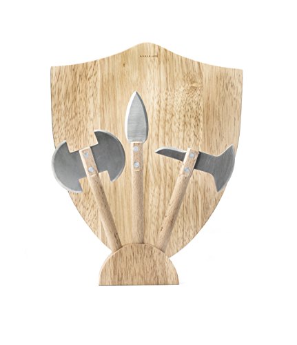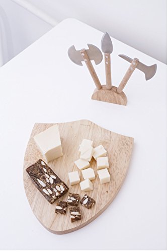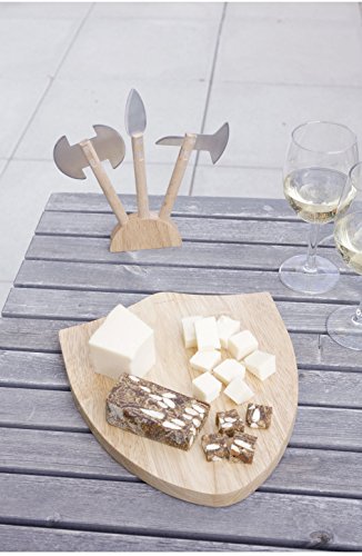 Go medieval on your cheese and hors d'oeuvres. Beautiful cheese board set is designed by Chris collicott. Medieval cheese board set is the perfect place to slice and serve guests. Beech wood and stainless steel designs make for easy slicing and dicing.