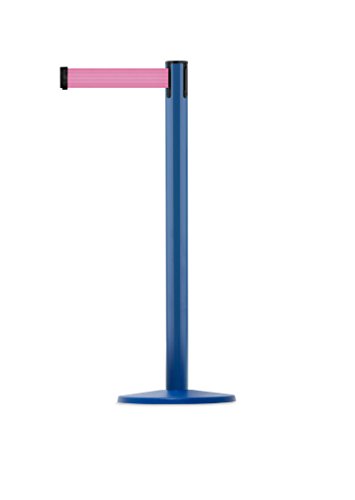 Tensabarrier 889U-23-23-MAX-NO-F3X-C - Blue Post, 2" Wide, 13' Length Florescent Pink Belt , 38" Height, 2.5" Wide, 156" Length