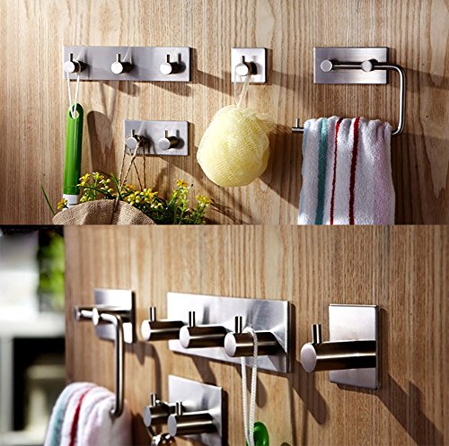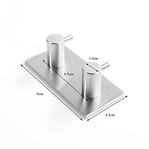 aBrilliantLife SUS 304 Stainless Steel 3M Self Adhesive Robe Coat Hook Key Rack 2-Hook Rail Garage Storage Organizer Stick On Sticky Bathroom Kitchen Towel Hanger Wall Mount , Brushed Finish