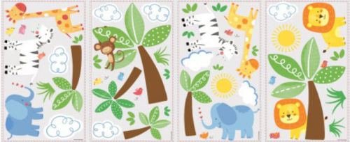 -. Feature : Removable, repositionable peel and stick vinyl wall stickers room decor Decals Bedroom decorations / Dimensions: 4 sheets of 10" x 18" / decals range from 1.3" x 1.4" to 9.3" x 12.5" / Number of Wall Decals: 47 -. Label : Nue Boss -. Manufacturer : Nue Boss -. ProductGroup : Home Improvement -. ProductTypeName : BUILDING_MATERIAL -. Publisher : Nue Boss -. Studio : Nue Boss -. Title : New JUNGLE ANIMALS FRIENDS wall stickers 47 decals safari zoo baby nursery decor
