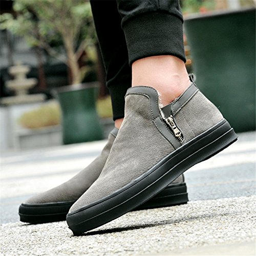 Binding : Apparel Product Description DETAILS Sole material: Rubber Shoe material: Suede Insole material: Artificial long Plush Color: Gray Size: 40-47 Style: Round toe Closed mode: Slip on Heel: Flat Pattern: Solid Popular element: Car sewing thread Occasion: Casual Season: Winter / Snow Style: Outdoor leisure shoes Function: Keep warm