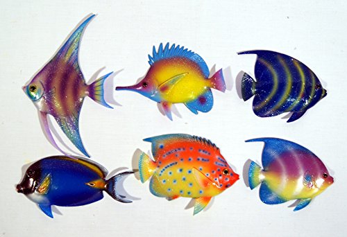 Handpainted C-A Gliter Cartoon Tropical Fish Wall Mount Decor Plaque 6" (Set Of 6)