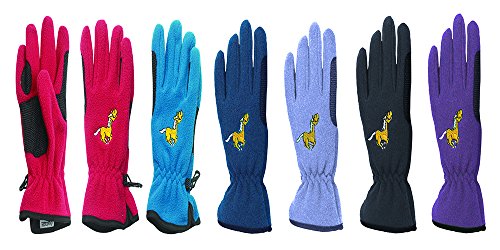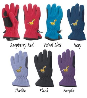Product DescriptionPopular childrens fleece glove with an embroidered frolicking horse on the back. Perfect for the cold days around the stables.0