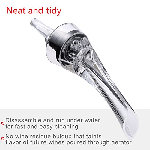 -. Feature : ENHANCES TASTE WITHIN SECONDS: Wine Aerator Decanter speeds up the breathing process by instantly aerating wine while pouring and provides Enhanced flavour and Fuller bouquet with balanced finish. / ELEGANT AND STYLISH DESIGN: Wine aerator comes with an elegant and stylish design made of high quality material which transforms any wine to great wine instantly. / EASY AND CONVINENT USE: Wine aerator from fits snugly to any wine bottle to create a leak free seal and the slanted design ensures drip free pouring. / This wine decanter is also easy to clean - simply hand wash and air-dry ready for its next use, IT is designed so ergonomically that its travel friendly and can be carried around safely and conveniently. / PERFECT GIFT FOR ANY OCCASION: Looking to impress friend and family with the perfect gift - Wine Aerator from is the one. This serves as an ideal gift for birthday, anniversary, wedding or any special occasion. Perfect for use in travel, bar, party, home, etc.