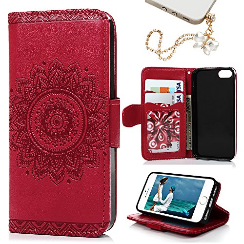 -. Title : iPhone SE & 5 & 5S Case, MOLLYCOOCLE Stand Wallet Premium PU Leather Skin Cover Magnetic Flip Folio TPU Cushion Bumper Embossed Flower Design for iPhone SE & 5 & 5S & Bling Butterfly Dust Plug,Blue