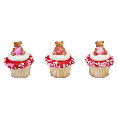 24 Pack Valentine Bears Heart Cupcake Rings Topper