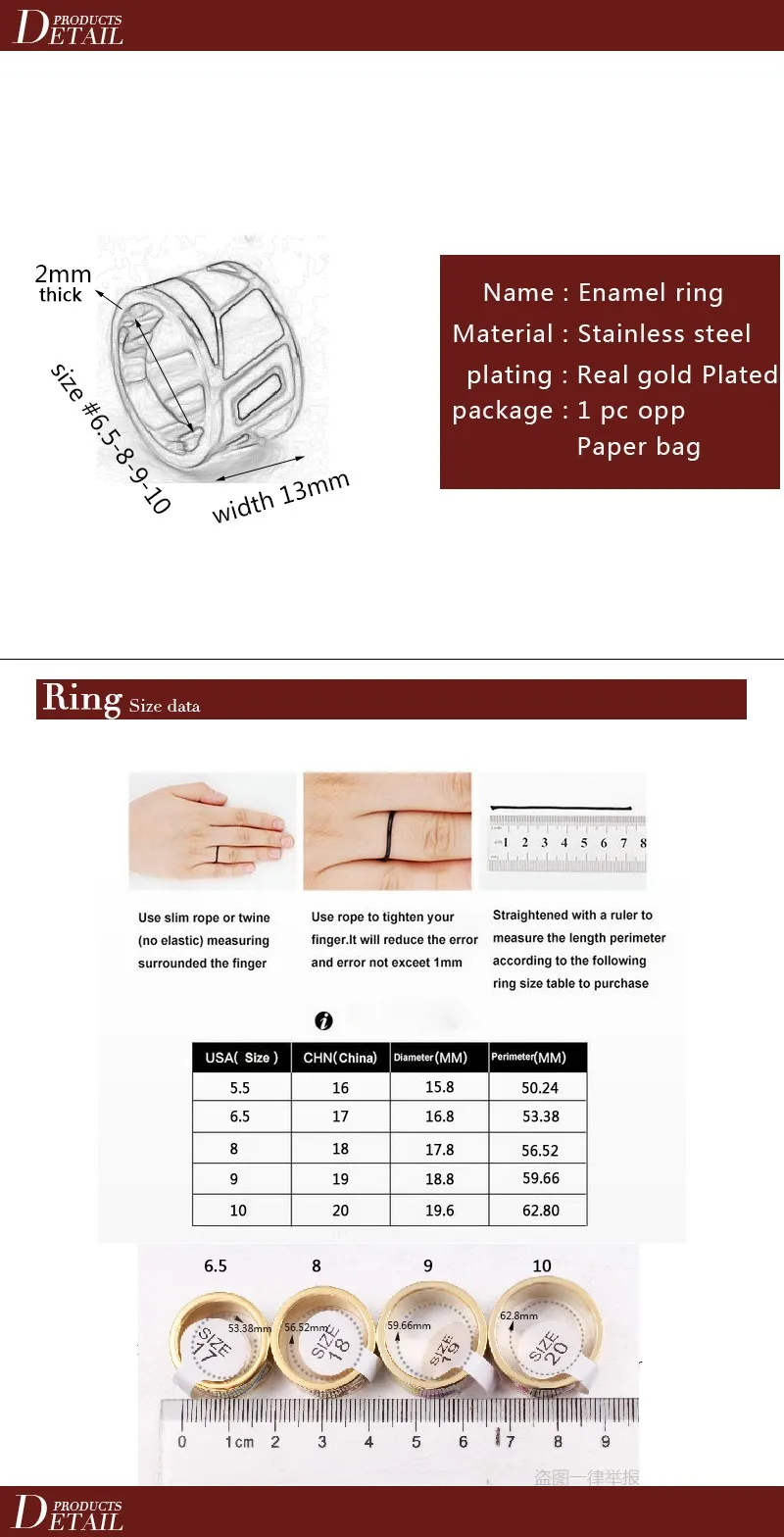 Rings size:6.5 8 9 10 for choose