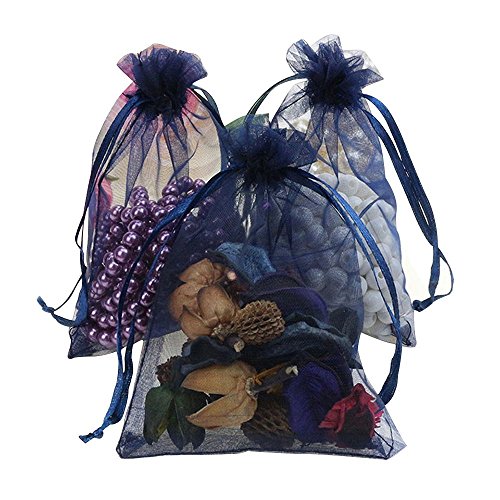 Kaimao 100 Pieces Organza Gift Bags Wedding Party Favor Bags Jewelry Pouches Candy Chocorate Pouch Wrap, 9 x 12 CM(Navy blue)