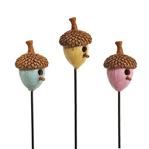 Georgetown Home & Garden Miniature Acorn Birdhouses Garden Decor, Pink/Blue/Yellow, Set of 3