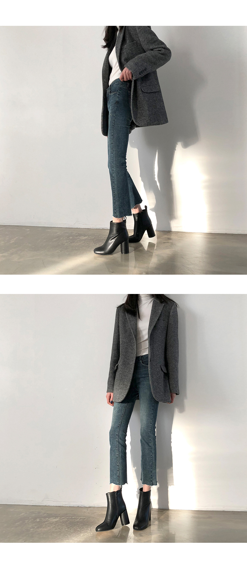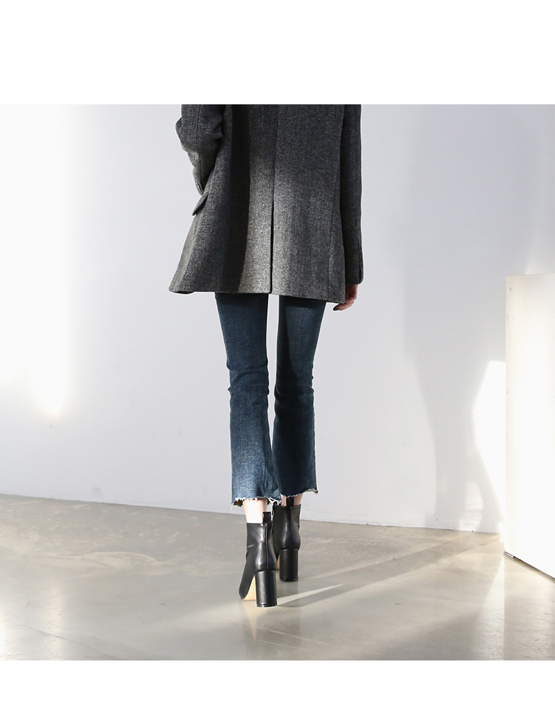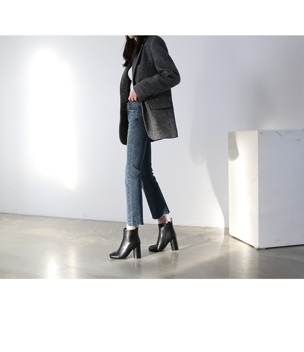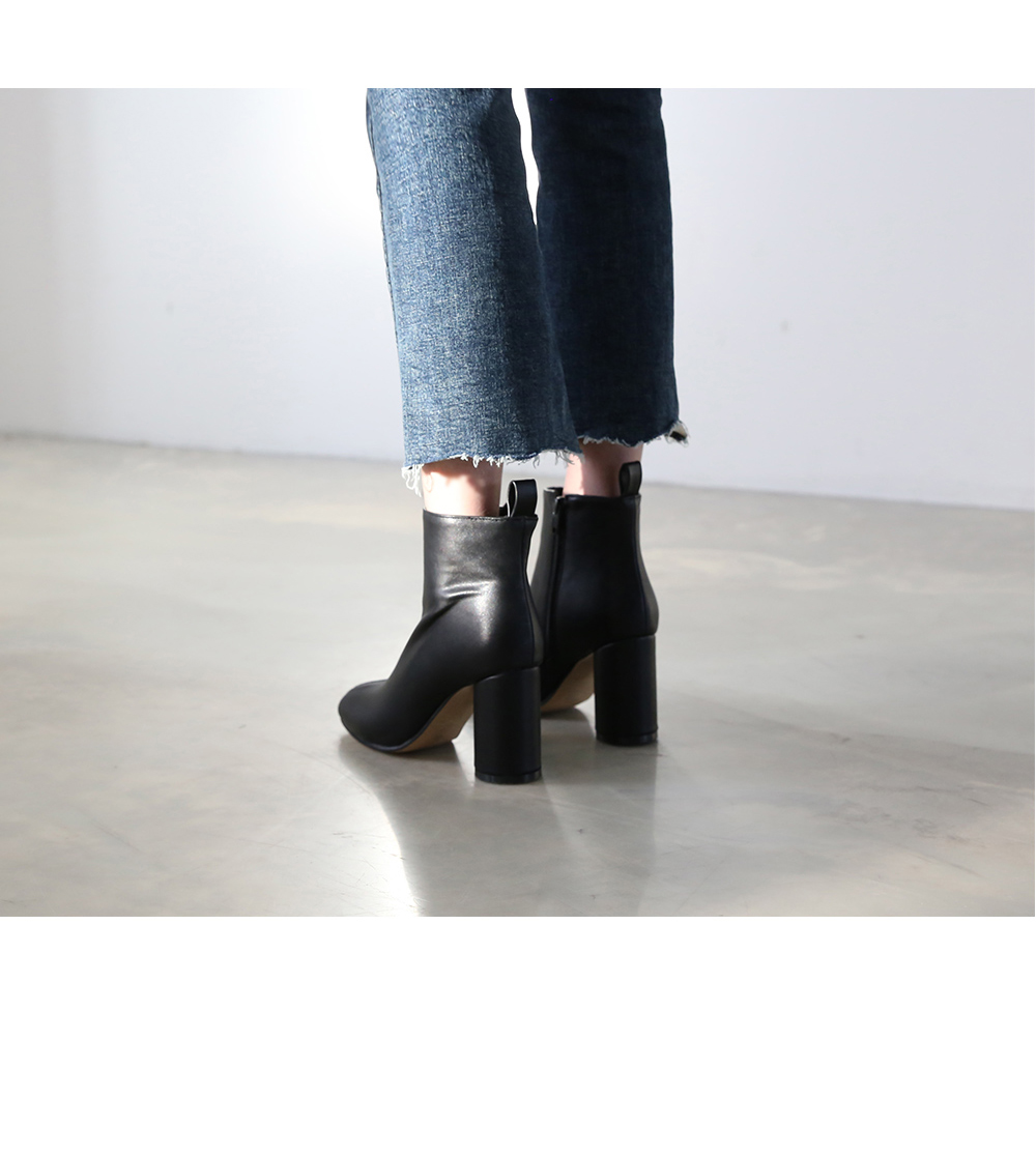 통통한 앞코와 라운드굽이 어우러져 앵클부츠 특유의 페미닌한 느낌보다는 캐쥬얼하게 연출되는게 특징입니다.