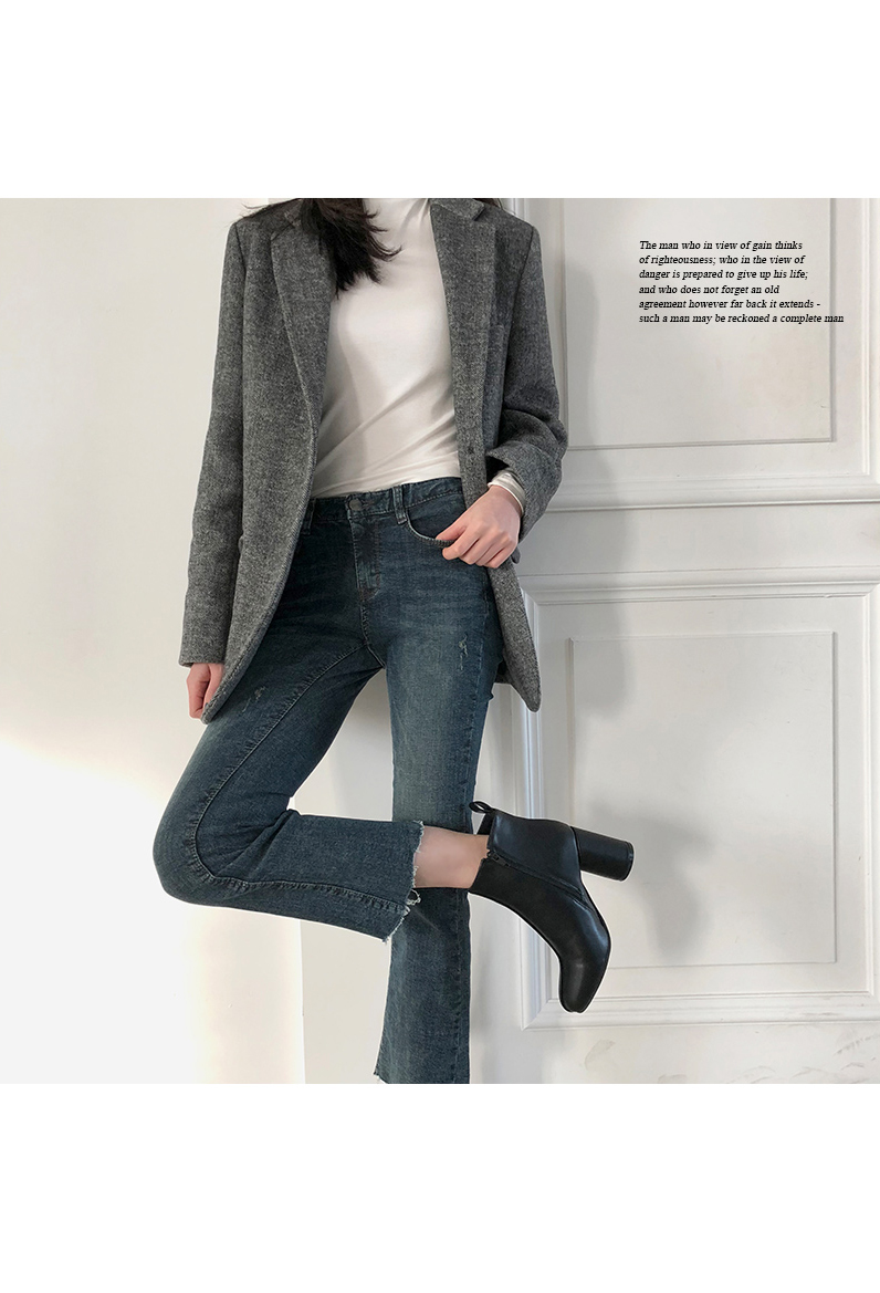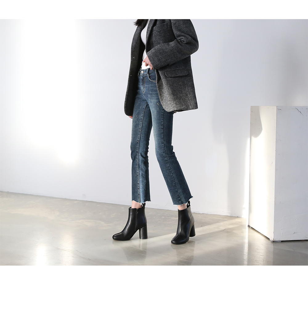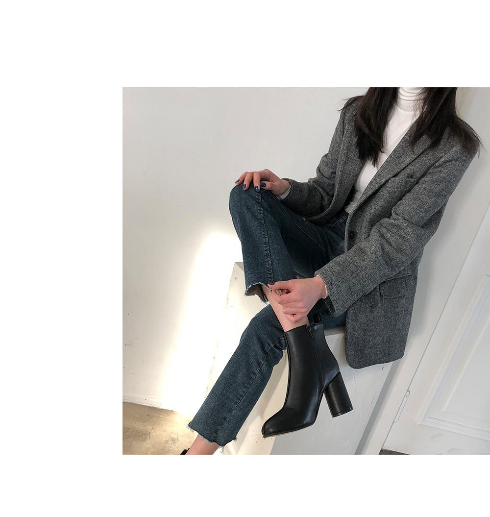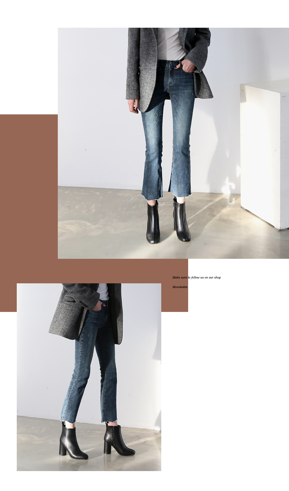 통통한 앞코와 라운드굽이 어우러져 앵클부츠 특유의 페미닌한 느낌보다는 캐쥬얼하게 연출되는게 특징입니다.