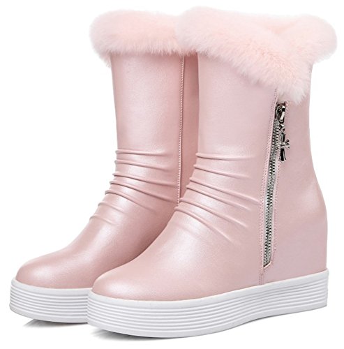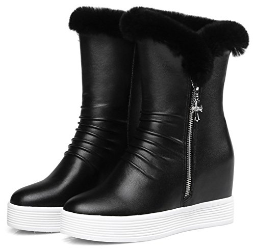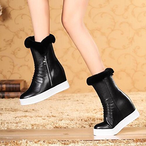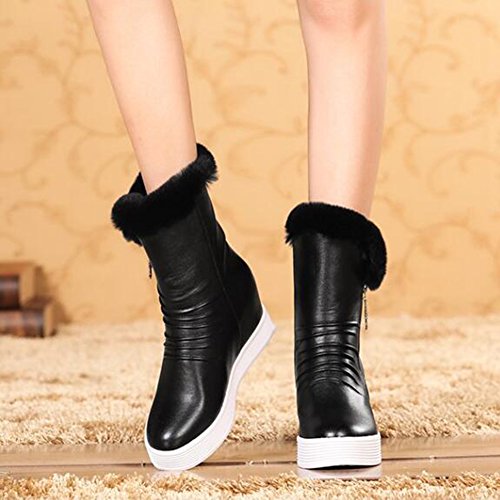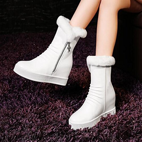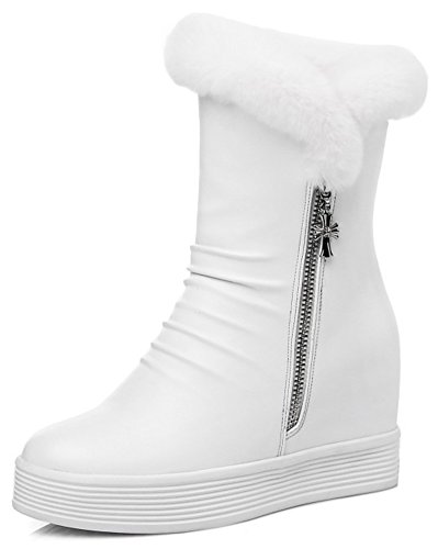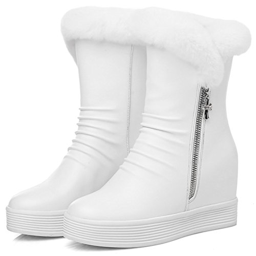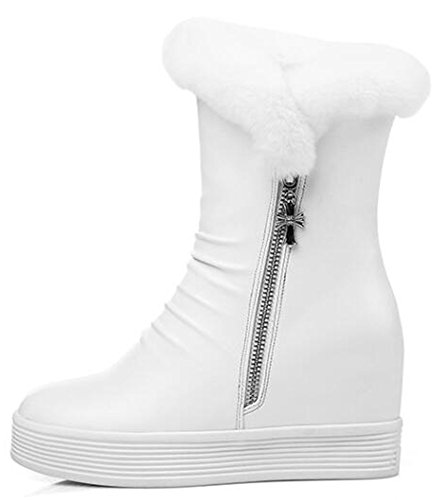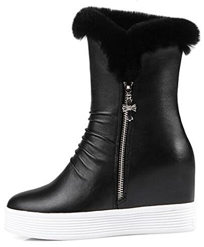 (Mofri)/Women's/Boots/DIRECT FROM USA/Mofri Women's Casual Fluffy Faux Fur Round Toe Invisible High Wedge Heel Platform Pull on Mid C...