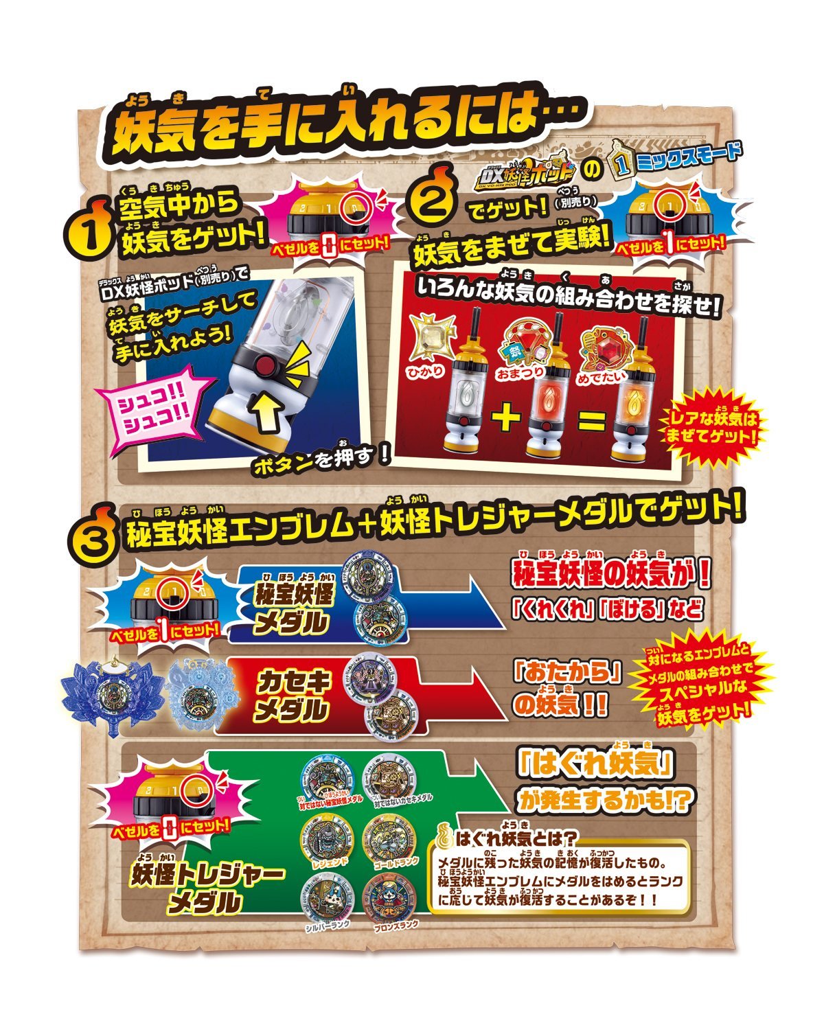 From the Youkai Watch, Treasure Gear 03 DX Yokai Sniper Appears! Treasure Gear's third bulk in the animated "Busters Treasure Edition"! Target enemy with youkai medals! Pull the trigger and fire a bullet!