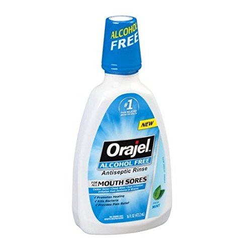 Orajel Alcohol-Free Antiseptic Mouth Sore Rinse, Fresh Mint, 16 Fl Oz (Pack of 2)
