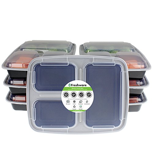 Freshware 3 Compartment Bento Lunch Boxes with Airtight Lids - Use for Meal Prep, Portion Control, 21 Day Fix, and Food Storage Containers (32oz, 7 Pack) are a great new alternative to expensive Tupperware. These containers are perfect for kids lunch box, bento box for work and are highly recommended by most fitness experts for meal preps, portion control, and 21 day fix. Made of FDA approved premium food safe polypropylene and are 100% BPA, PVC, and Phthalate FREE!