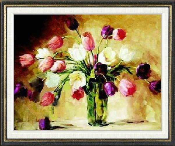 これ素敵っ クロスステッチ 刺繍キット油絵風 チューリップ L307lvt-307【1~2日発送】