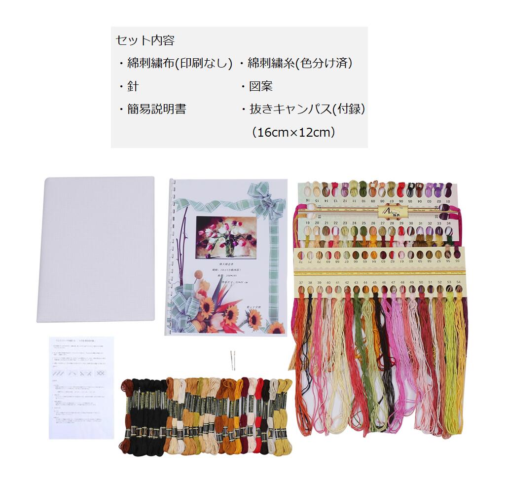 ・刺繍布刺繍糸:DMC(色分け済み)  刺繍布  針  図案(カラー) 日本語での説明書