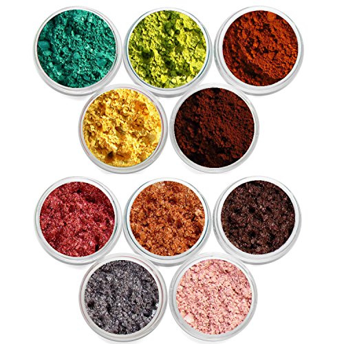 10 Piece Cosmetic Grade Mineral Makeup Soap Dye Shimmer Mica & Matte Oxide Pigment Powder Soap Colorant DIY Packed In 3 Gram Jar Myo Set. Set # 11 & 13