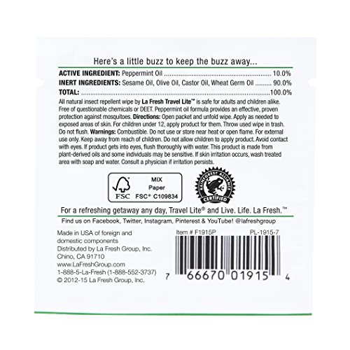 La Fresh Mosquito Repellent Wipes, Individually Wrapped – Natural, Deet Free, Non Toxic, Long Lasting Repellent Protects Against Almost All Bugs (50 Packets)