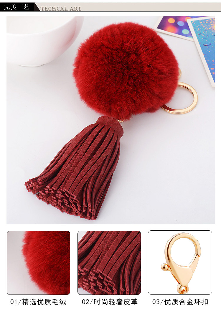 Korea creative gift tassel Rex rabbit hair ball key chain  韩国创意礼品流苏獭兔毛球钥匙扣