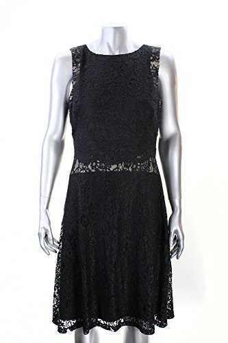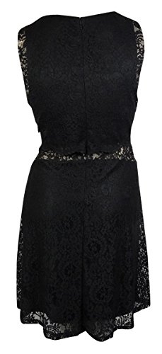 Dress features full lining, round neckline, sleeveless, layered lace fabric, flared skirt, and concealed back zipper closure.