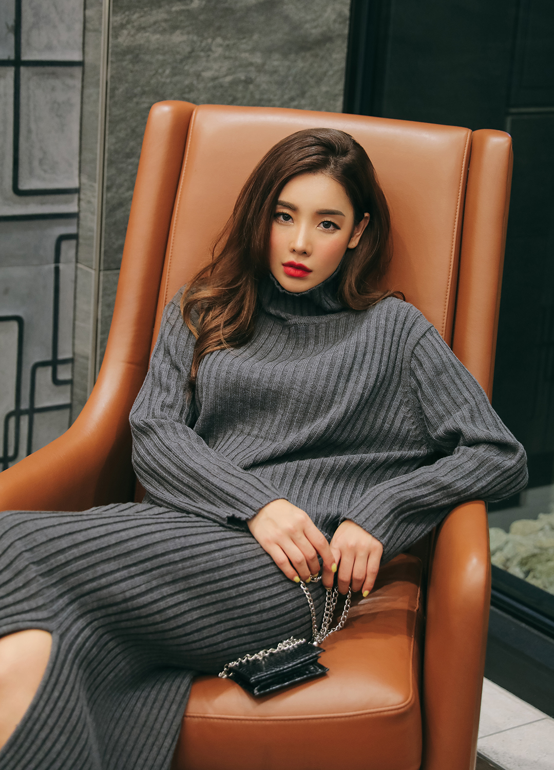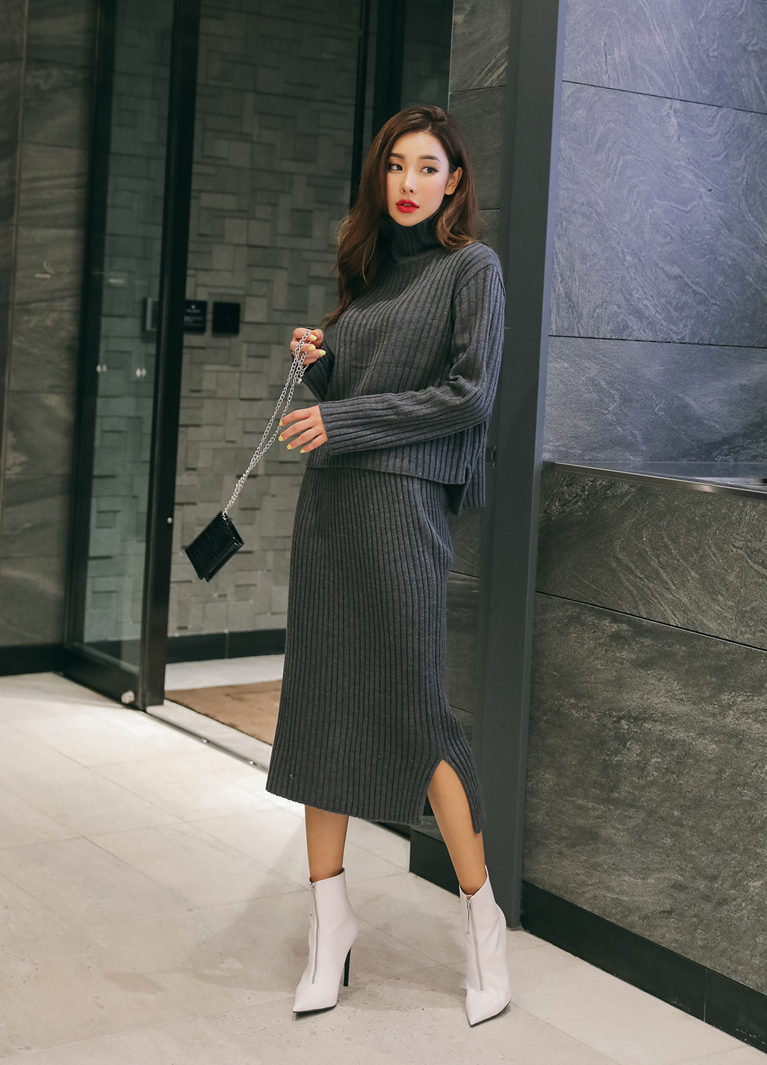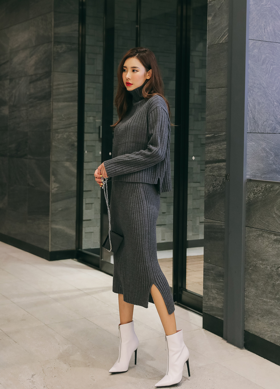 골지 조직 니트 스커트터틀넥 크랍 골지 풀오버와 셋업 상품 H라인 실루엣,