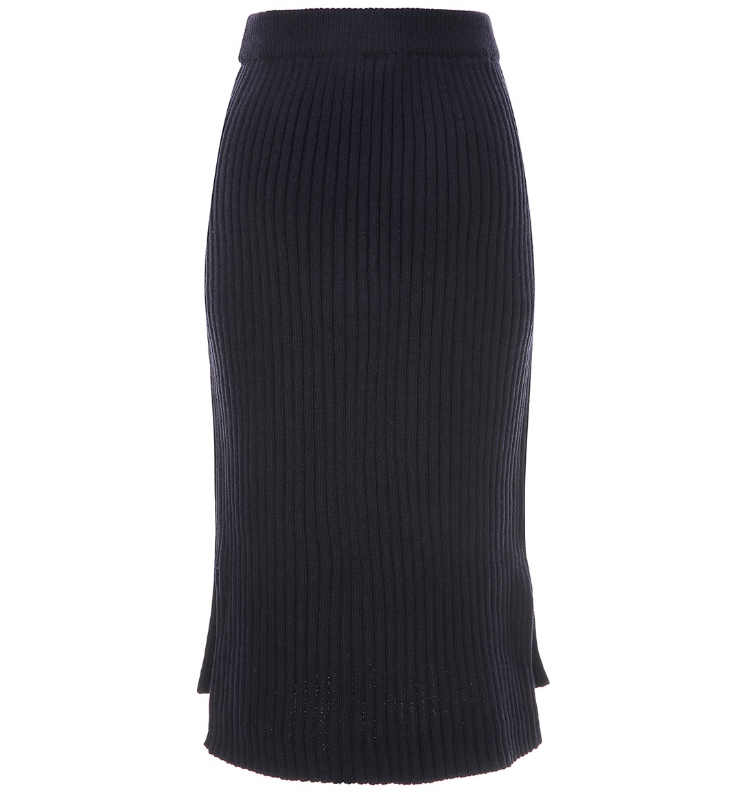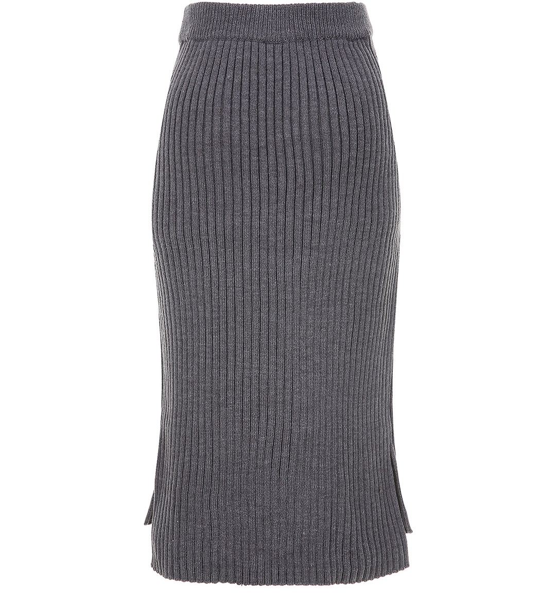 무릎 아래까지 내려오는 기장감, 옆트임 있는 스커트입니다.