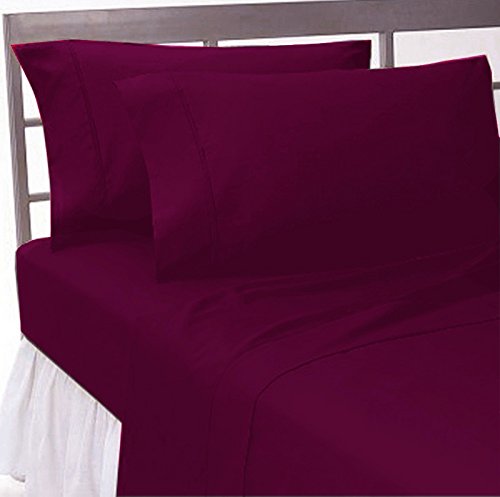300TC Egyptian Cotton QUEEN BURGUNDY SOLID SHEET SET BY MARRIKAS