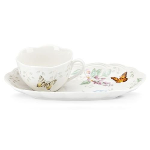 Studio : Lenox Publisher : Lenox Binding : Kitchen Product Description The most popular casual dinnerware collection in America, Butterfly Meadow is truly a contemporary mix and match classic. Inspired by the artistry of Louise Le Luyer, there are many delightful pattern varriations to choose from, each offering an exquisite array of butterflies, blooms and other wonders of nature, all rendered in a soft color palette. Crafted of the finest Lenox porcelain, Butterfly Meadow is the perfect choice for today. All of the dinnerware is safe for use in the dishwasher, the microwave and guarantees superior freezer to oven to table performance. Designed for chip-resistant durability, Butterfly Meadow will take a cherished place in your home for many years and offers the opportunity to expand your collection with the incredible range of dining, decor and gift giving choices available. Best of all, this versatile, stylish and fun collection is created by Lenox, America's first name in home entertaining. Known around the world for offering a unique combination of design, artistry and superior quality for over 125 years, Lenox has unmatched durability and is backed up by a lifetime replacement program to guarantee many years of enjoyment. Great for soup and sandwich or coffee and dessert, this 2 piece giftboxed set fits neatly on your lap. The 11" tray has an indent to hold the coordinating cup. 0