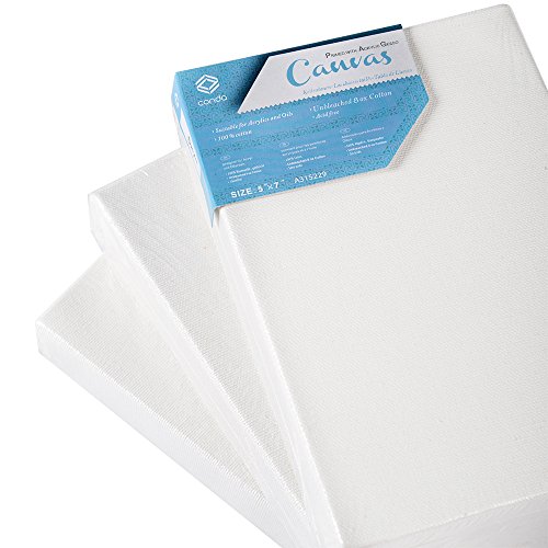 CONDA Artist Stretched Canvas 5" x 7" 6 Pack 1- 3/4" Profile Primed Gesso Professional Quality Thick Frame Canvas