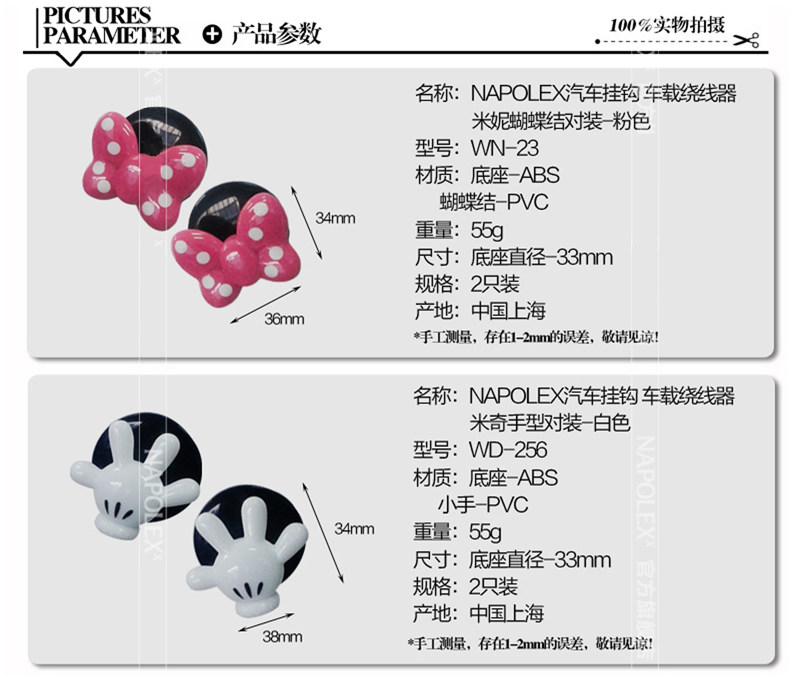 米奇 卡通汽车用椅背挂钩 可爱车内车载多功能创意置物钩