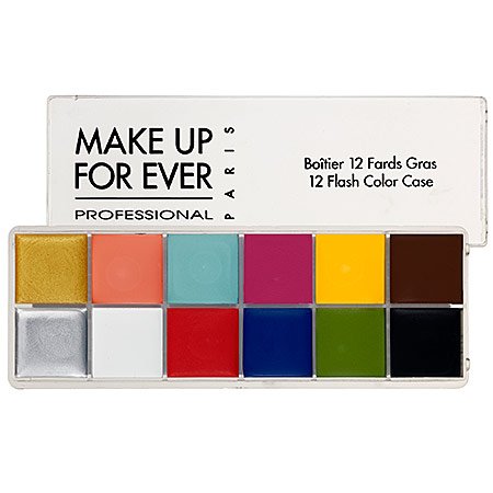 What it is:12 vibrant Flash Colors in one palette.What it does:This 12 Flash Color Case is found in the kits of many well-known makeup artists. You can create an array of looks with this palette and it's great for traveling. It can be used on the eyes, cheeks, and lips.What else you need to know:This palette is a Sephora-exclusive and contains Gold 004 (metallic gold), Coral 002 (vibrant coral), Turquoise 000 (light turquoise), Fuchsia 005 (bright fuchsia pink), Yellow 013 (vibrant yellow), Brown 023 (dark brown), Silver 003 (metallic silver), White 010 (pure white), Red 017 (bright red), Bright Blue 014 (bright royal blue), Leaf Green 008 (bright green), and Black 011 (pure black).