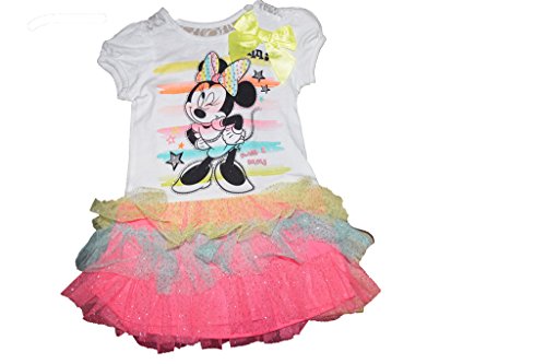 -. Title : Disney Minnie Mouse Ruffled Sleeve Dress with Tiered Flounce - Pink Blue Yellow