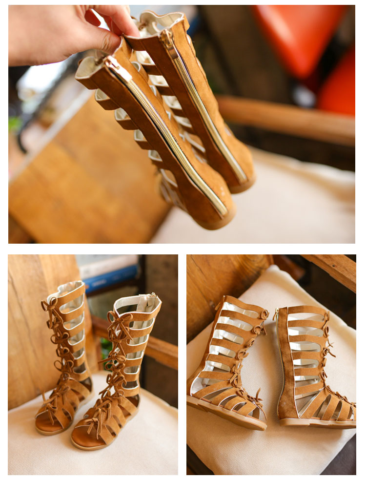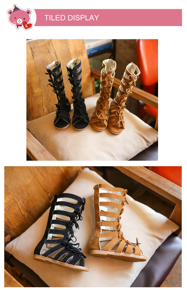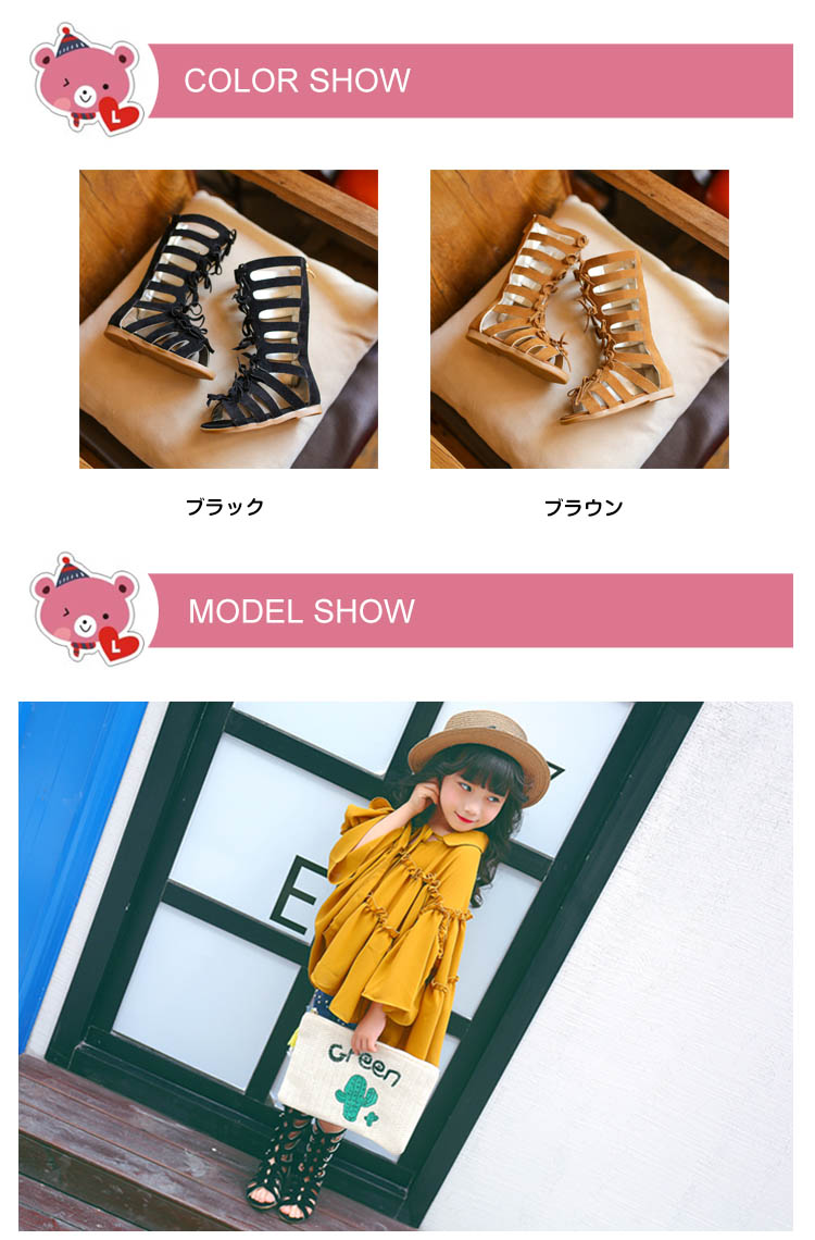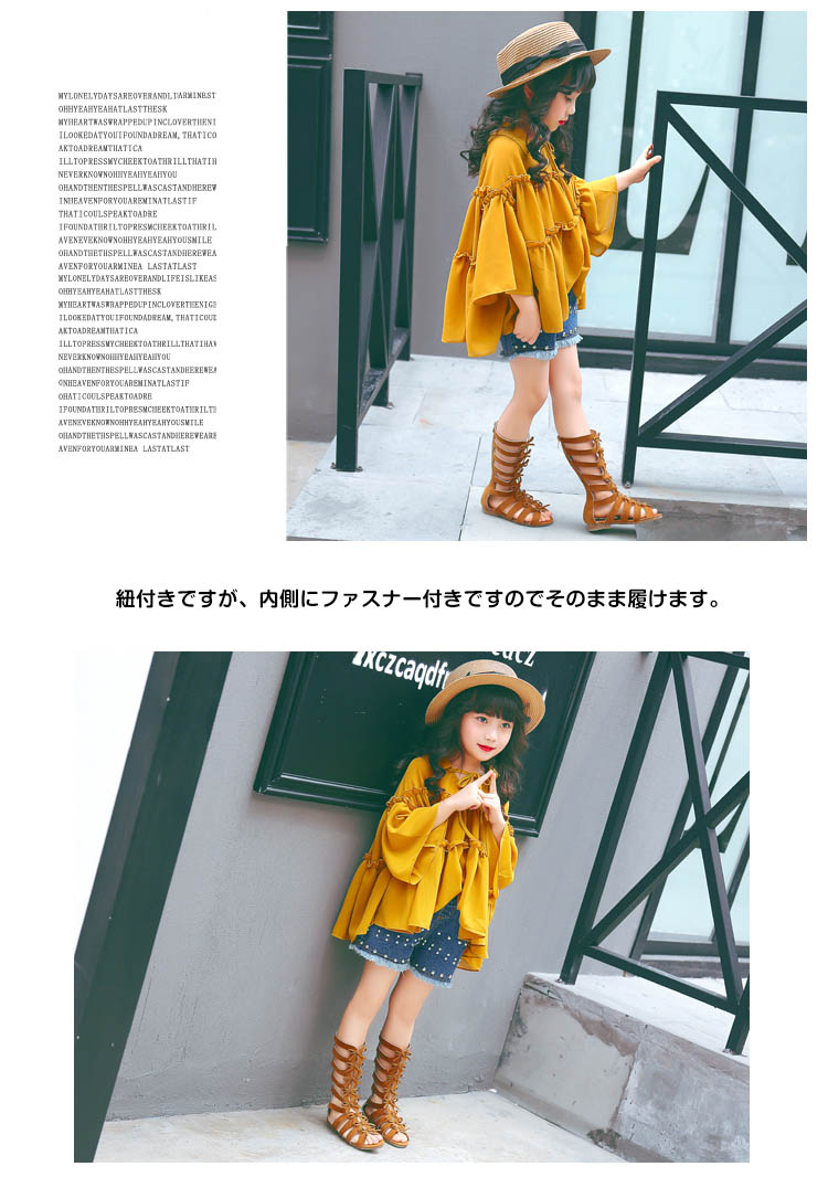 | スウェードを使った、レースアップサンダルです。紐付きですが、内側にファスナー付きですのでそのまま履けます。大人仕様ですのでお母さんも使えます | |
