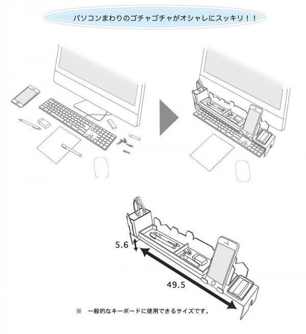 キーボードの上に置いて、パソコンまわりのゴチャゴチャがオシャレにスッキリ。