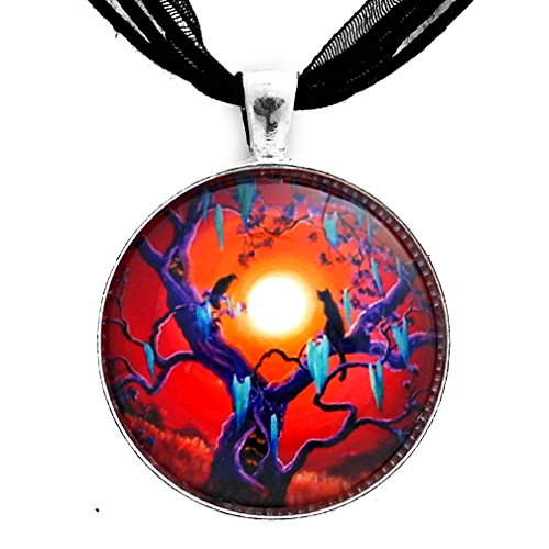 -. Binding : Jewelry -. Brand : Laura Milnor Iverson -. Color : Orange -. Department : womens -. Feature : Wear a piece of fine art! / Archival P.R.Int topped with a domed glass cabochon / Black ribbon necklace included...Ready to wear / Ships in an organza drawstring bag / Handmade in the artist's studio -. Label : Laura Milnor Iverson -. Manufacturer : Laura Milnor Iverson -. Model : hauntedtree4circle -. MPN : hauntedtree4circle -. PartNumber : hauntedtree4circle -. ProductGroup : Jewelry -. ProductTypeName : FASHIONNECKLACEBRACELETANKLET -. Publisher : Laura Milnor Iverson -. Studio : Laura Milnor Iverson -. Title : Halloween Jewelry Black Cat Necklace Raven Crow Pendant Orange Moss Spooky Tree Moon Pagan Wiccan