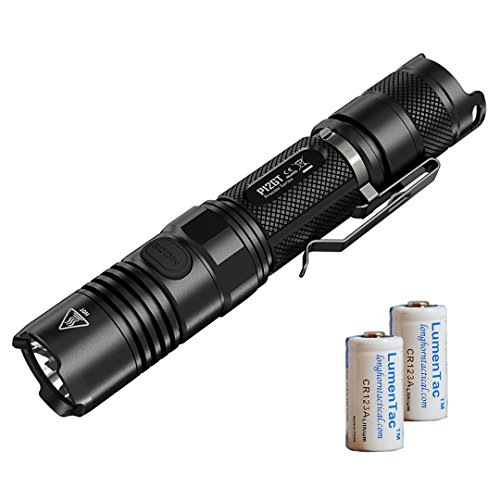 Bundle: 3 Items- Nitecore P12GT 1000 Lumens Compact Tactical LED Flashlight, 2 x LumenTac CR123A Batteries