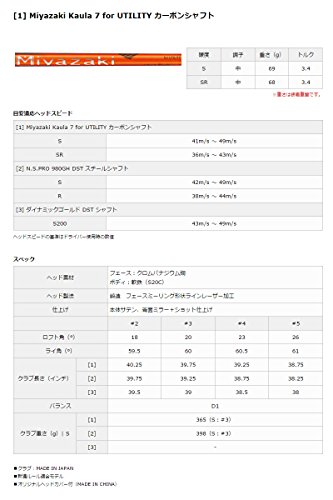 원본상품명: DUNLOP(ダンロップ) ユ?ティリティ SRIXON Z U65 ユ?ティリティ Miyazaki Kaula7 for UTILTY カ?ボンシャフト ロフト角:23度 番手:4U フレックス