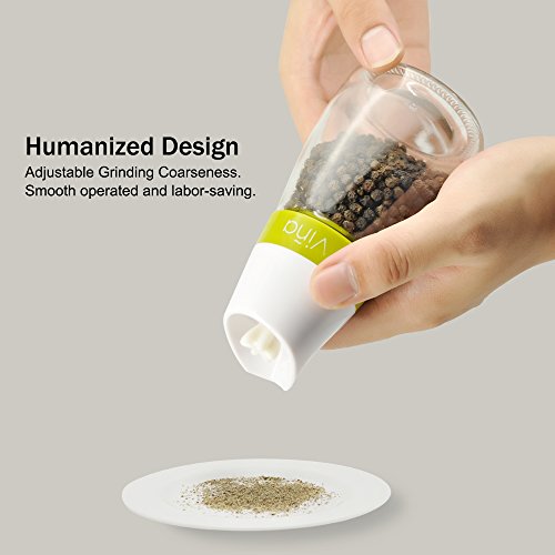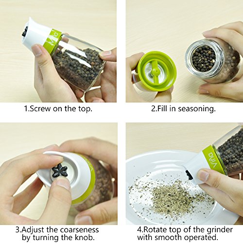 - ELEGANT DESIGN WITH MATCHING STAND : Plastic top and glass body with stand, ceramic grinder enhance the durability, make the salt and pepper grinder durable and easy to use. *Salt and pepper not included