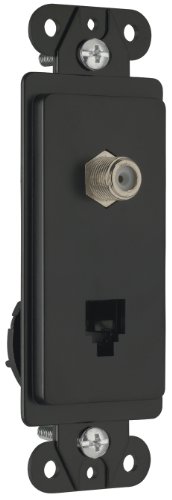Combination decorator rectangular design insert with 1 "F" type COAX connector with 4 conductor (RJ-11) telephone jack