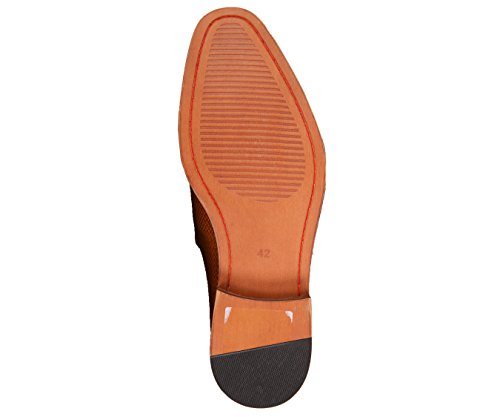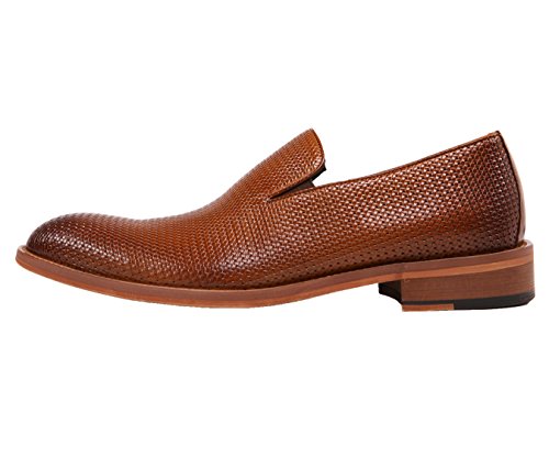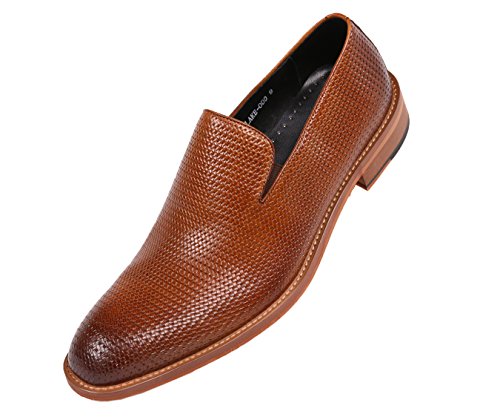 Binding : Apparel Product Description A dress shoe that will never go out of style, these rich Cognac Brown leather Oxfords are an essential for any man's wardrobe. Their sleek leather body is accented by a woven embossed upper and classic lace-up closure, while tonal topstitching on each piece lends subtle detail to these stately shoes. Pair this easy-to-coordinate colors with any style of suit for an instantly elevated, refined look, or upgrade your daily look by pairing these derby shoes with simple slacks and a button-down shirt. Over time, the leather will acquire unique wear patterns that only enhance the beauty of these shoes and create a more customized fit. A durable wood colored rubber soles ensures they'll be worn for years to come. 0