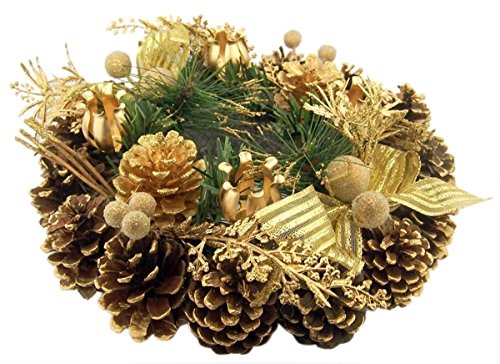 Gold Glitter Pine Cone with Ribbon Advent Candle Holder Wreath Seasonal Decoration