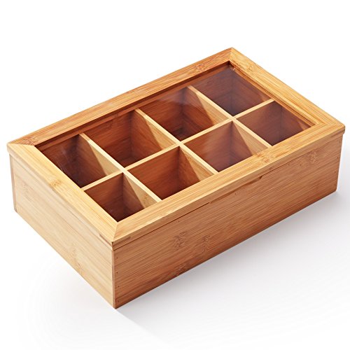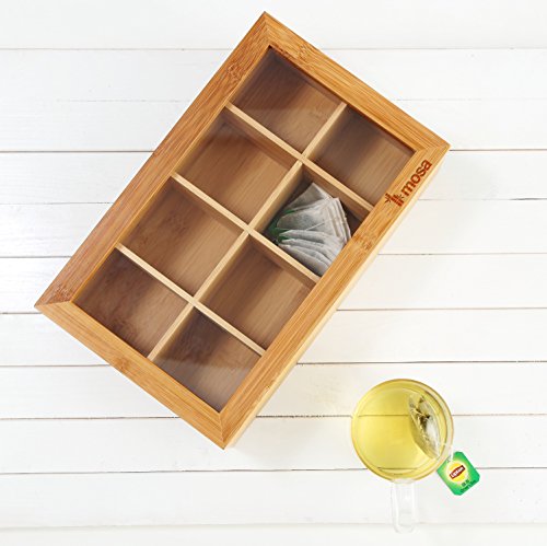 Natural Bamboo Storage Box With Lid (12" X 7.5" X 3.8"), Mosa Coffee Box Container Tea Bags Box Chest With Cover