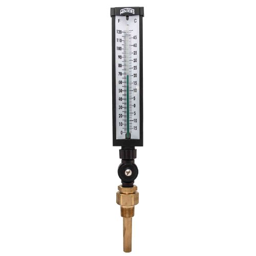 Winters TIM Series Dual Scale Aluminum Industrial 9IT Thermometer, 3-1/2" Stem, 3/4" NPT with Thermowell, 0-120 F/C Range